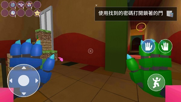 这里以玩具工厂为例,游戏的操作十分简单,左侧控制人物移动,右侧则用于操控机械手和跳跃。