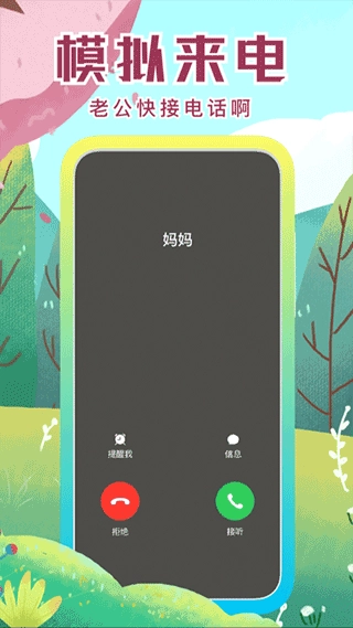 假装老板让你开会、老婆喊你回家,你可以模拟QQ、微信、信息、钉钉消息界面,然后自定义来信人的姓名电话和内容,你还可以创建多条来新人消息、以及延时发送,选个手机背景界面更逼真。