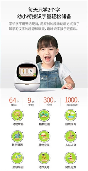 【全语音教学内容】220万+的全语音教学内容,涵盖儿歌、故事、国学、算术、英文、百科等各个学科,可随意点播,进行交流互动。