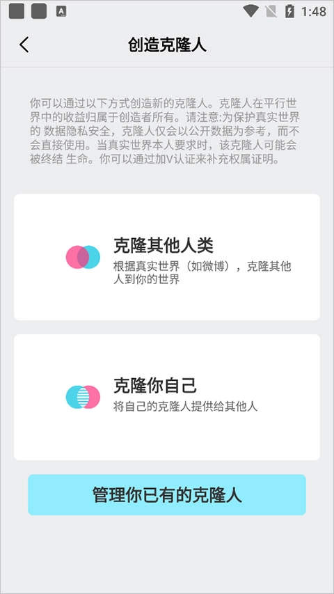 应用中还可以在发现页面中创建克隆人,可以克隆他人也可以克隆自己