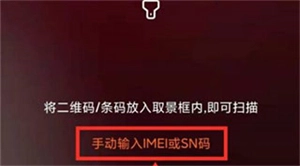 4、进入扫一扫界面,点击【手动输入IME1或SN码】;