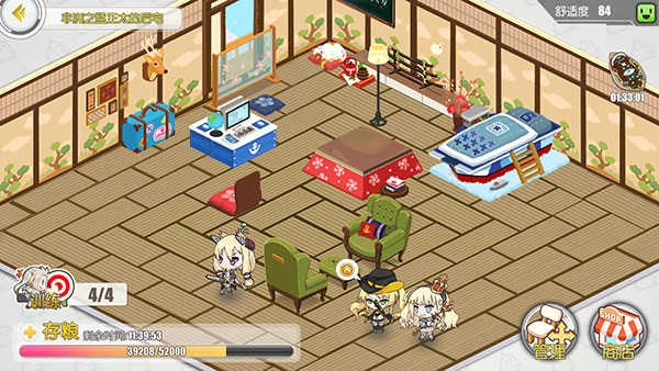 训练所获经验值会受存粮与舒适度的影响。后宅中最多能有四位舰娘同时开展训练,初始仅设有两个训练位,若想增加训练位,可通过使用钻石来购买。