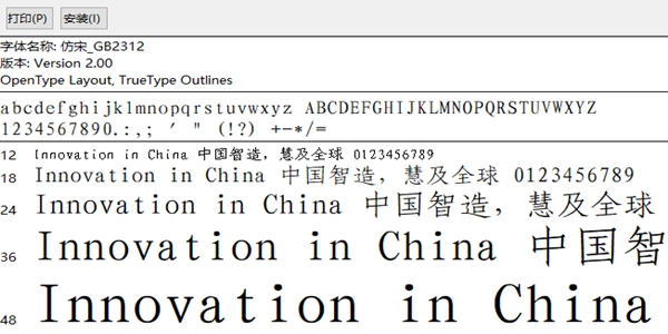 仿宋 GB2312:基于 GB2312 字符集,支持简体中文字符。