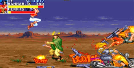 恐龙快打街机版游戏中玩家可扮演四位角色(杰克、汉娜、穆斯塔法和麦斯),利用拳脚、武器和载具对抗敌人。游戏特色包括流畅的打击感、丰富的武器系统(如机枪、火焰喷射器)以及独特的恐龙敌人设定。支持多人合作闯关,关卡设计充满挑战,BOSS战极具压迫感,是90年代街机厅的必玩神作之一,至今仍被怀旧玩家津津乐道。