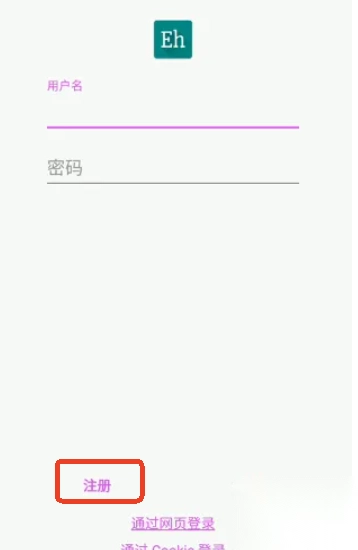 1. 首先下载并安装好EhViewer绿色版本,待软件安装完成打开后,点击首页的“注册”按键,从而进入账号创建界面。