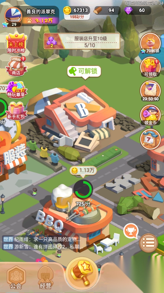 1、好友互动、公会拼图,组队打造最强小镇联盟。