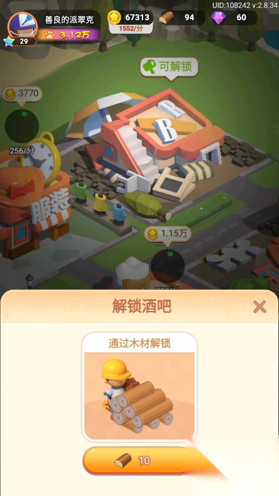 2、玩家想要解锁和装饰都需要用到木材