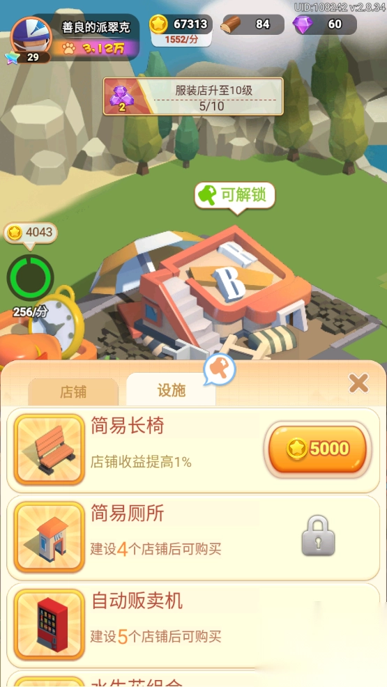 3、而设施则需要金币来购买,建设好的设施可以提高店铺的收益