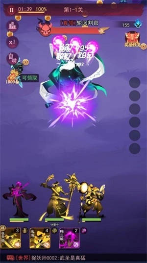 3、选好魂将后角色会自动攻击,击败敌人会随机掉落玉符和符咒