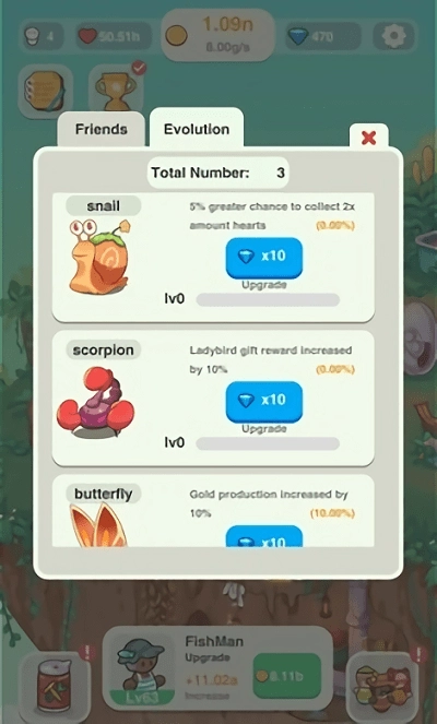 3、点升级花144金币把渔夫升到4级,收益能加12.1,现在有420金币。