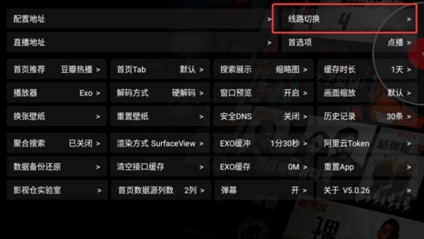 2. 在设置界面中,便能看到线路切换这一功能。
