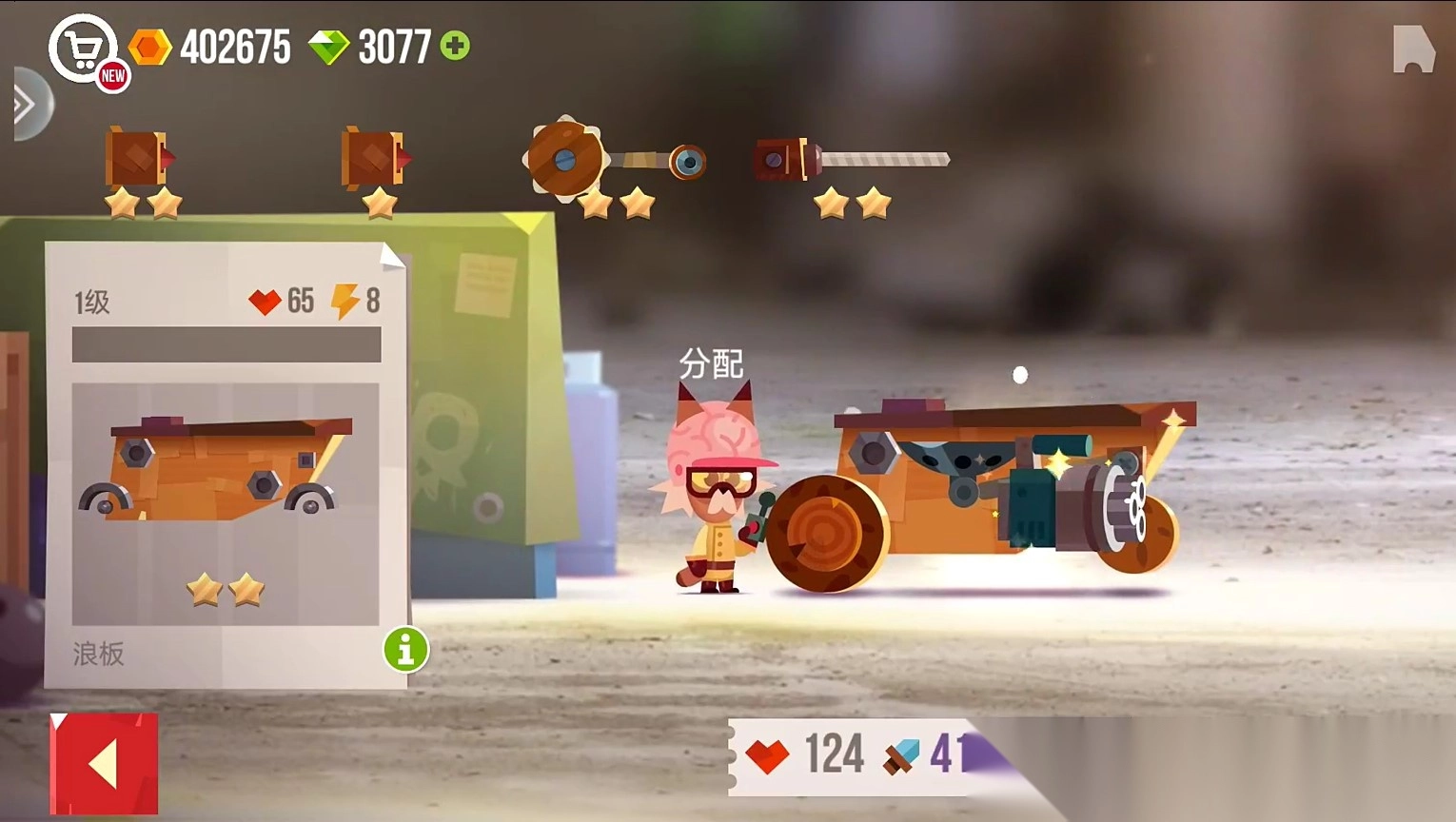 6、玩家获胜可以获得奖励,解锁不同的可用部件,增强实力。
