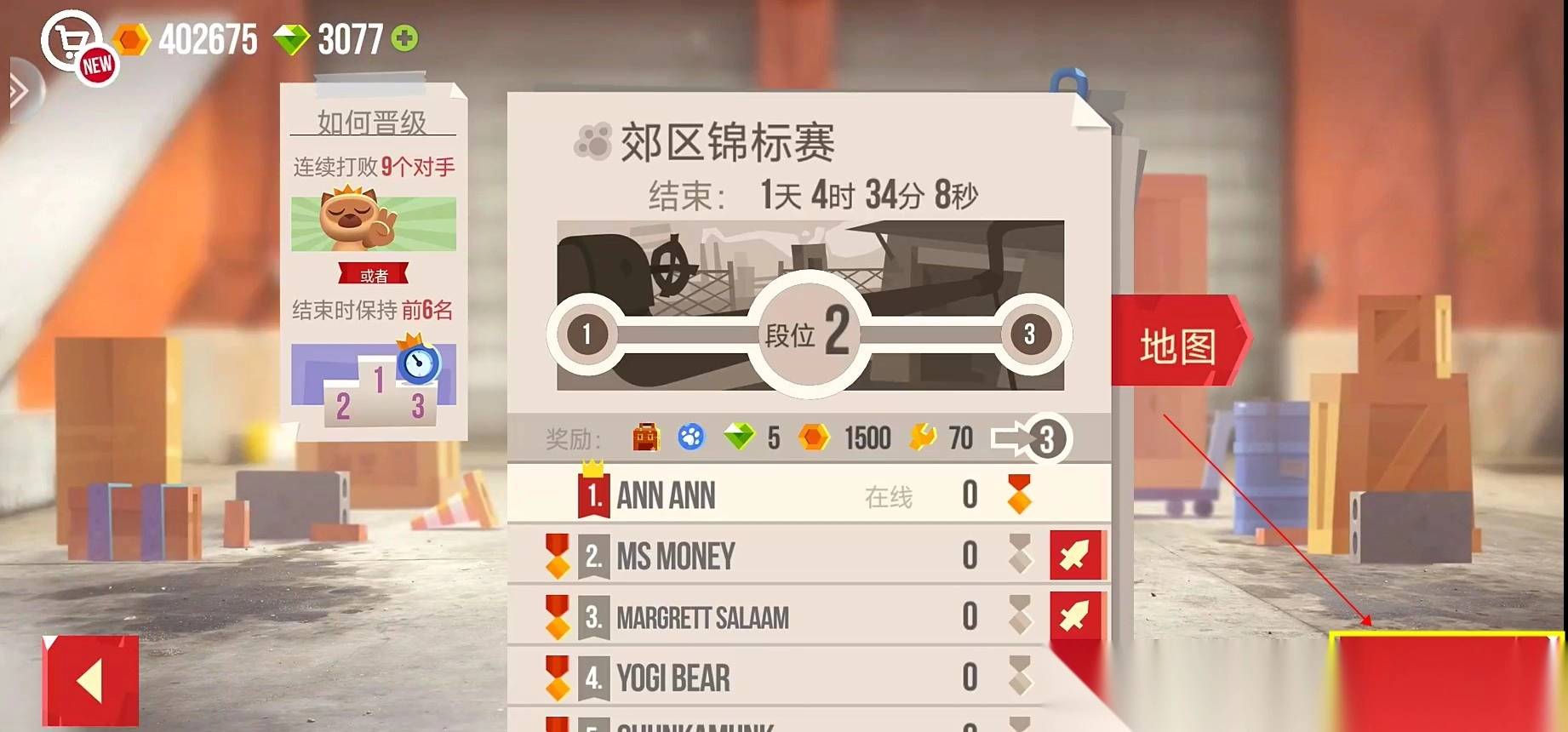 5、赢得9场战斗后,就能直升下一个段位。