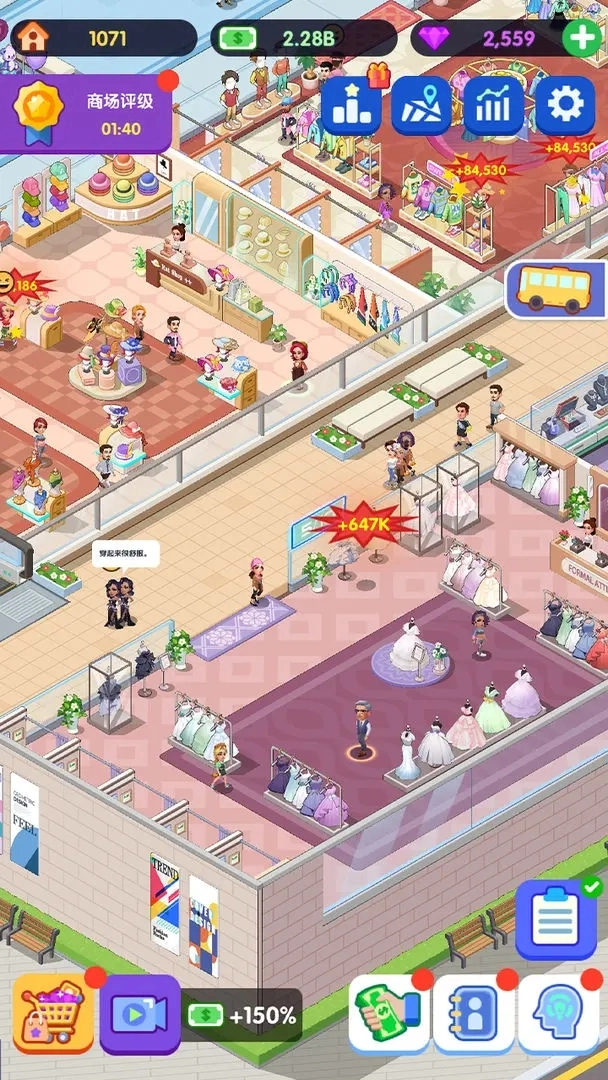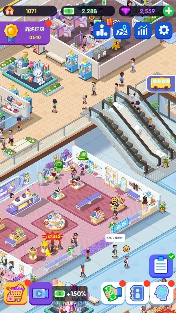 游戏拥有丰富多元的玩法,处处充满挑战。你不但得精心规划商业布局,还得依据顾客的需求灵活调整运营策略,比如举办精彩的时装秀,开展各式各样的促销活动,以此提升商场的人气。