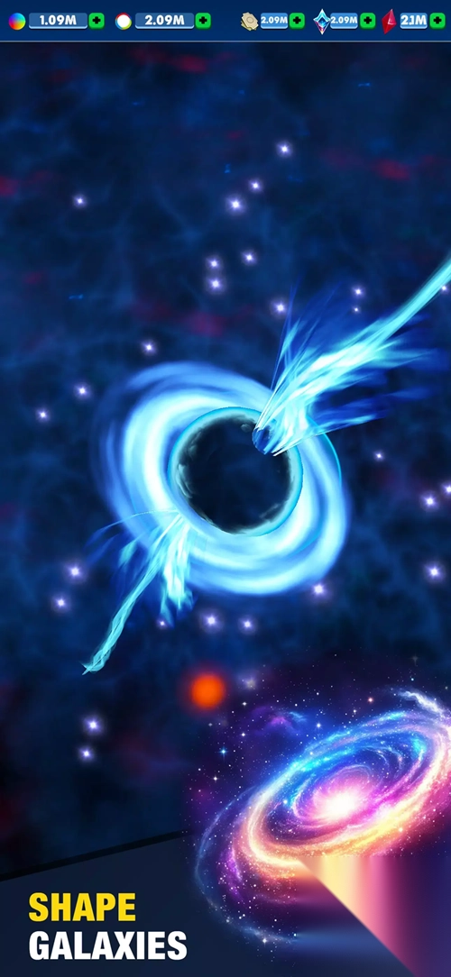1. 伴随游戏的推进,玩家所构建的宇宙会逐步从单个粒子演变成一整个星系。