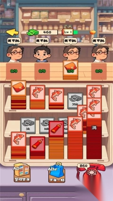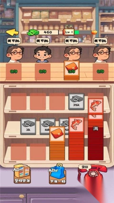 2. 通过调整商品价格、补充库存以及处理顾客需求等操作,来赚取金币进而升级店铺。