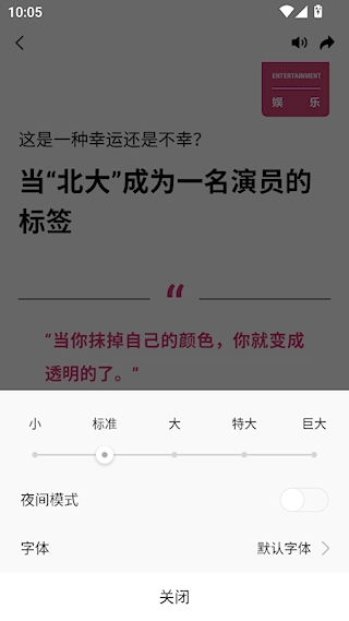 3、可以调整字体的大小和样式,还可以开启夜间模式。