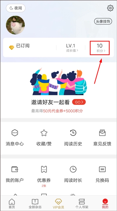 在Vista看天下app中,点击底部的【我的】,接着点击右上角的【夜间模式】,就能完成调整。