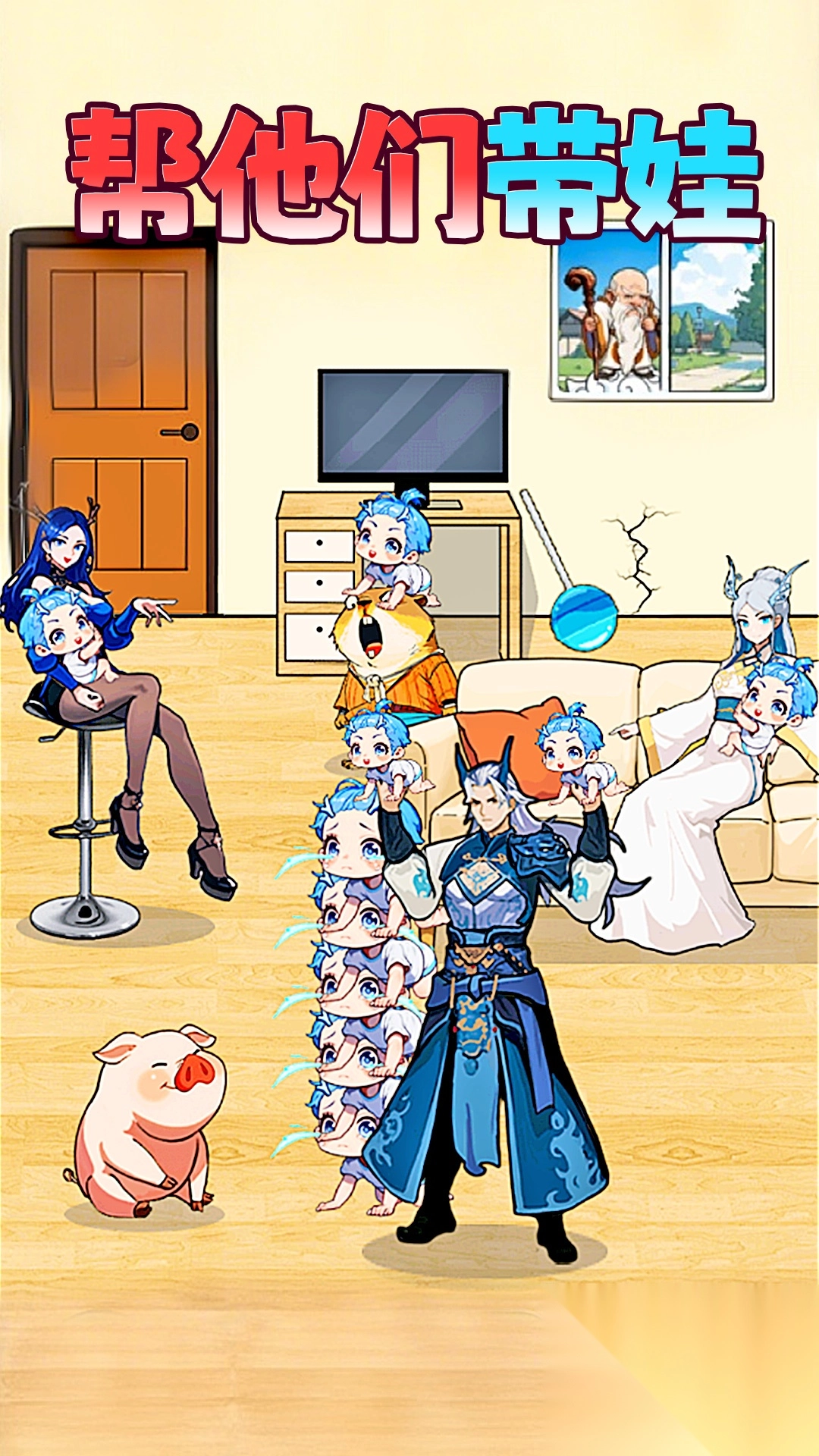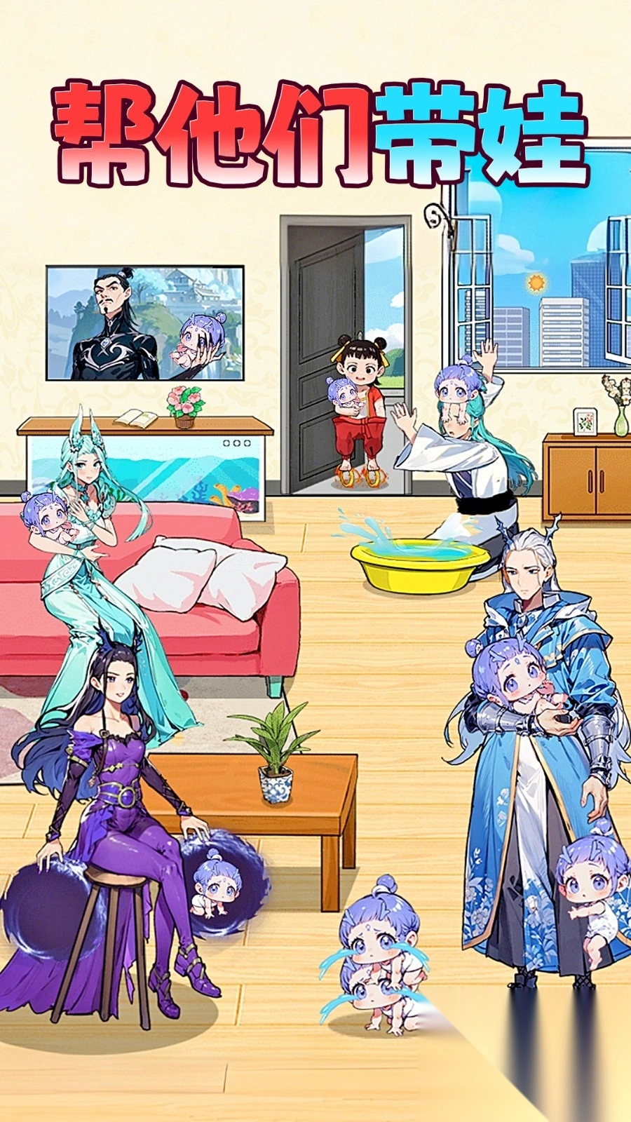 3、游戏中存在风格多样的角色,像古装人物便是其中一类。玩家需与这些角色展开互动,助力他们解决在带娃过程中面临的选择题。