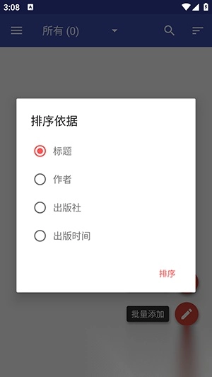 1用户可选择多种排序依据,包括标题、作者、出版社以及出版时间。