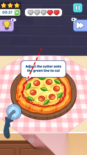 12. 根据绿色线条来切开pizza。