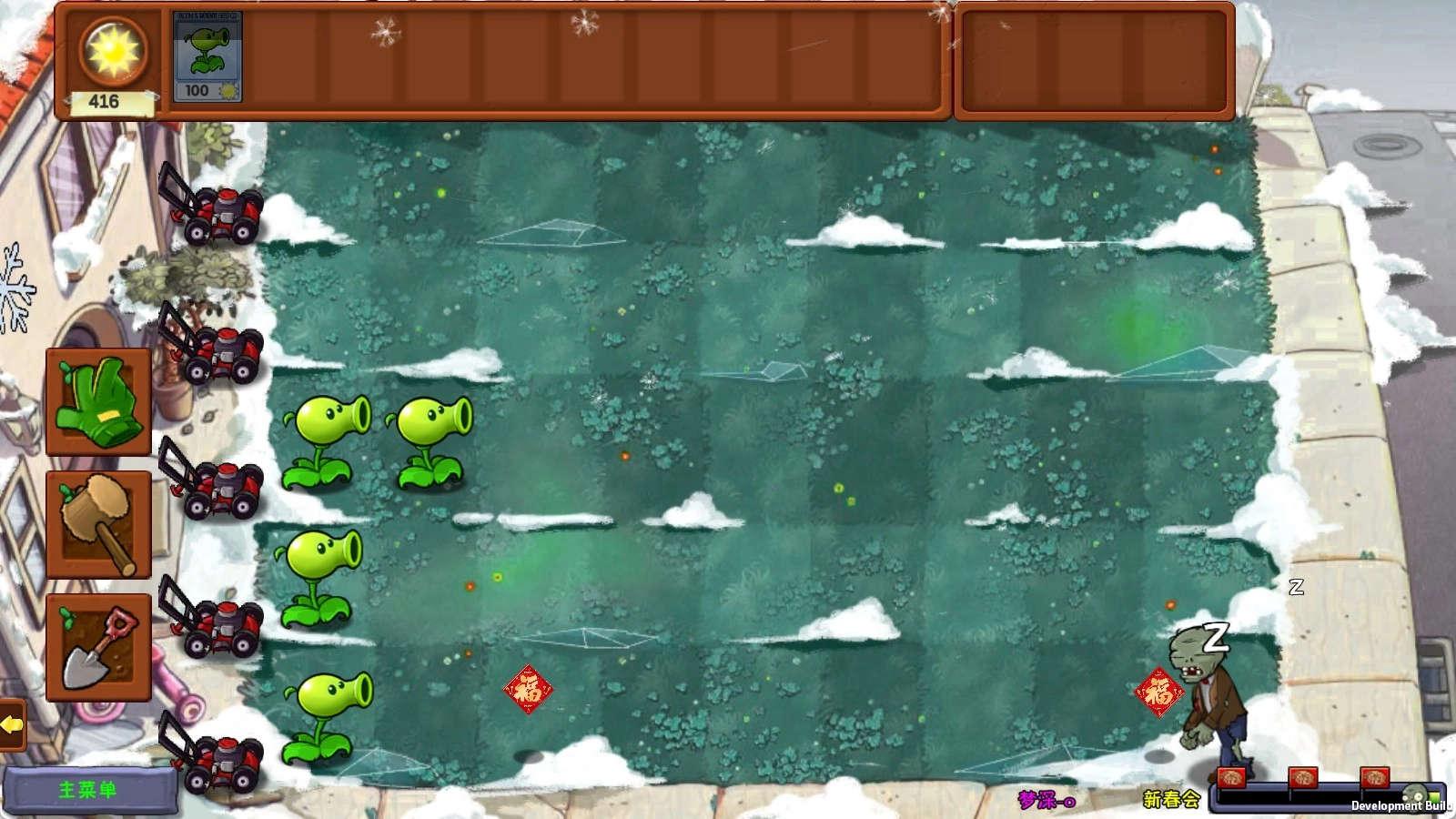 游戏中的植物会发射带有春节元素的特别子弹,增添了节日气氛。