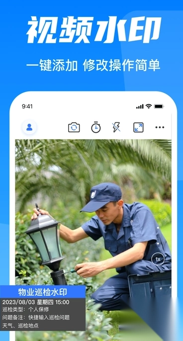 2、不管是日常记录生活的点滴瞬间,还是在上班打卡、外勤签到场景中,都可一键添加专属水印/2