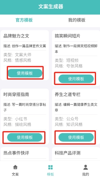 3、点击模板,可以先选一款,自己文案比较贴近的
