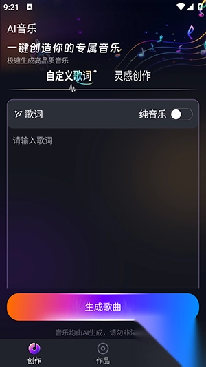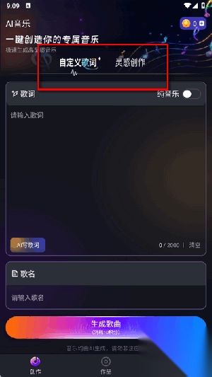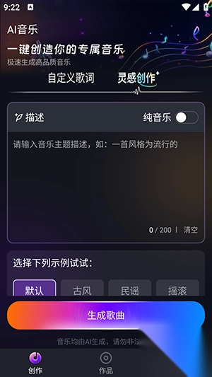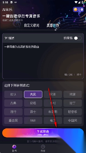 2. 输入相关描述内容之后,点击生成歌曲按钮。