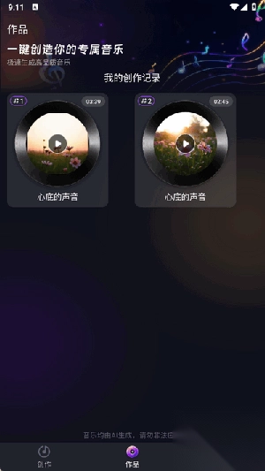 3. 随后即可在作品区域查看创作完成的歌曲。