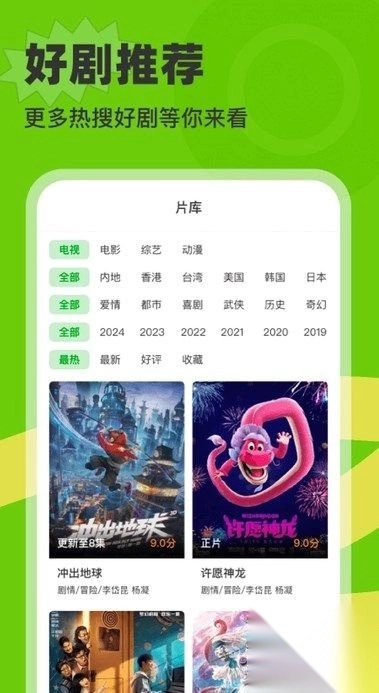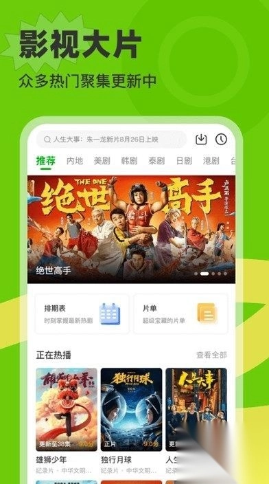 1、影视大片,众多热门剧集更新中,喜欢的题材都可以去搜索。