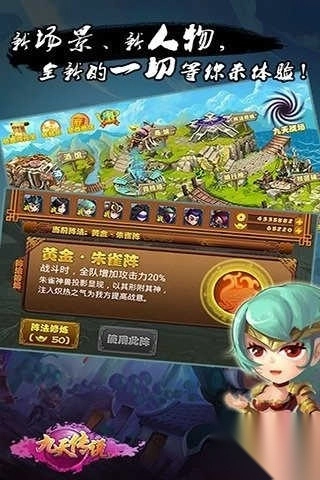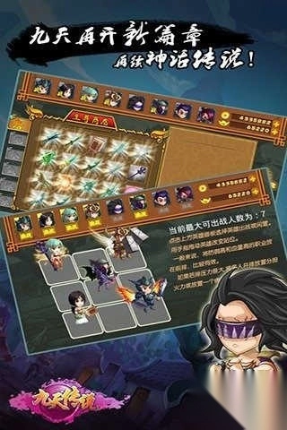 3、丰富的游戏模式,英雄招募、阵法修炼、装备升级、竞技场、九天战场,等你来体验。