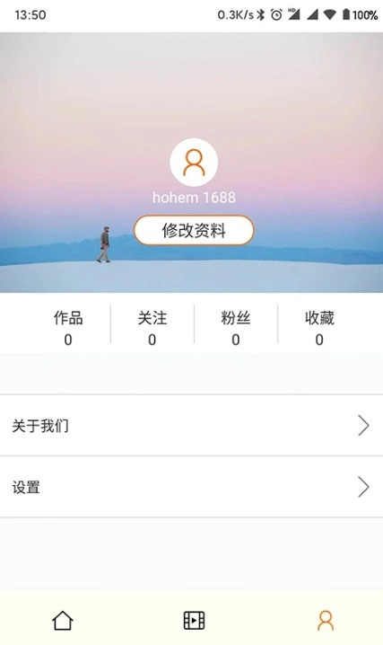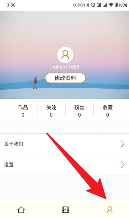 1. 点击底部“个人中心”图标可进入主页,修改昵称、头像、查看作品、粉丝与个人设置信息。