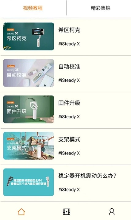 2. 在首页可浏览视频教程,包括云台连接、校准、固件升级等内容,适合新手边学边操作。