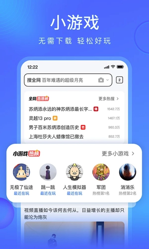 4. 把首页滑动到中间位置,点击“小游戏热榜”区域,就能直接试玩热门的休闲小游戏。无需下载即可畅快游玩,非常适合在零碎时间随时用来打发时间。