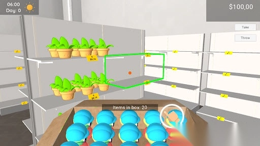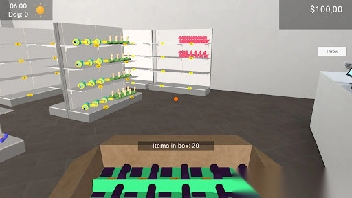1. 开启游戏,走进超市,玩家会看到店内空空荡荡,所以玩家首先要做的便是将玩具摆上货架。
