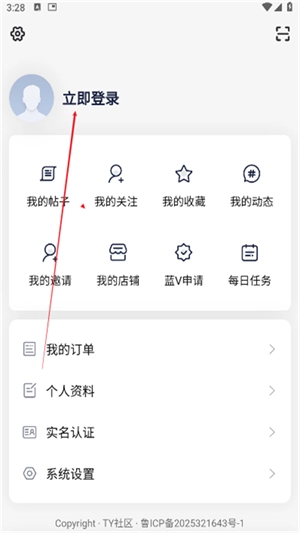 1、开启TY社区APP,随后登录账号。