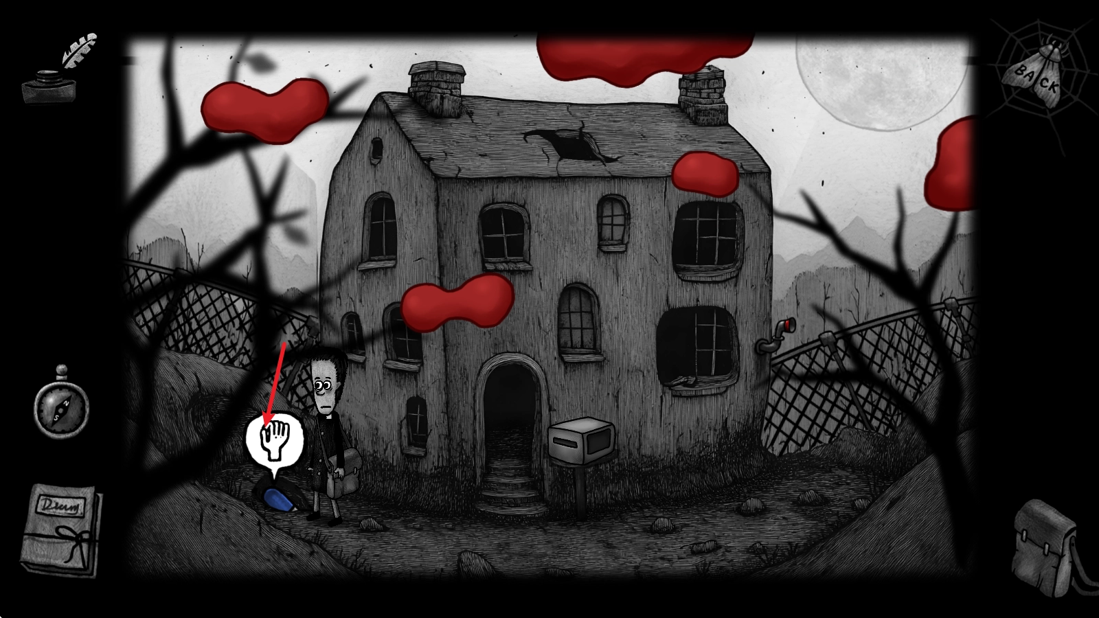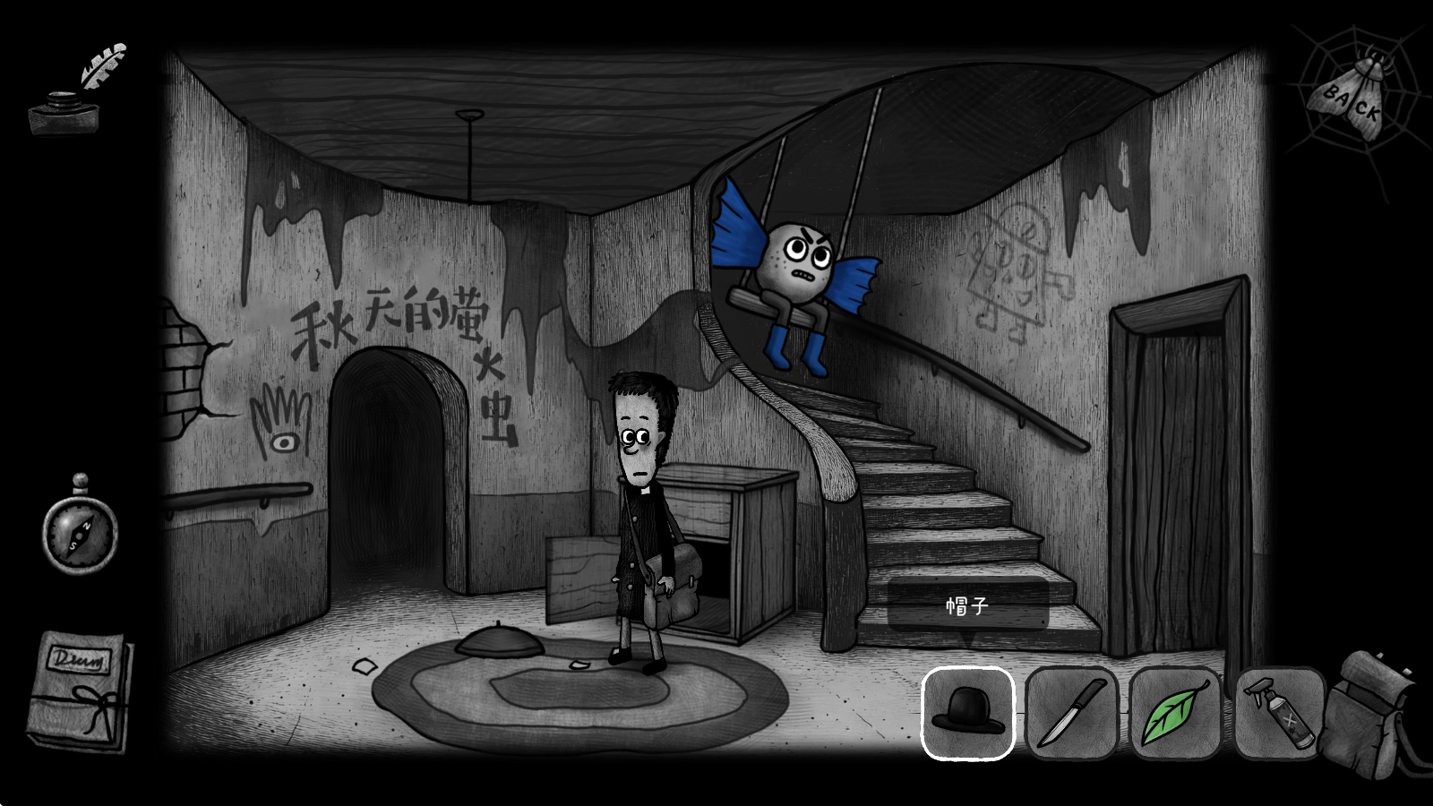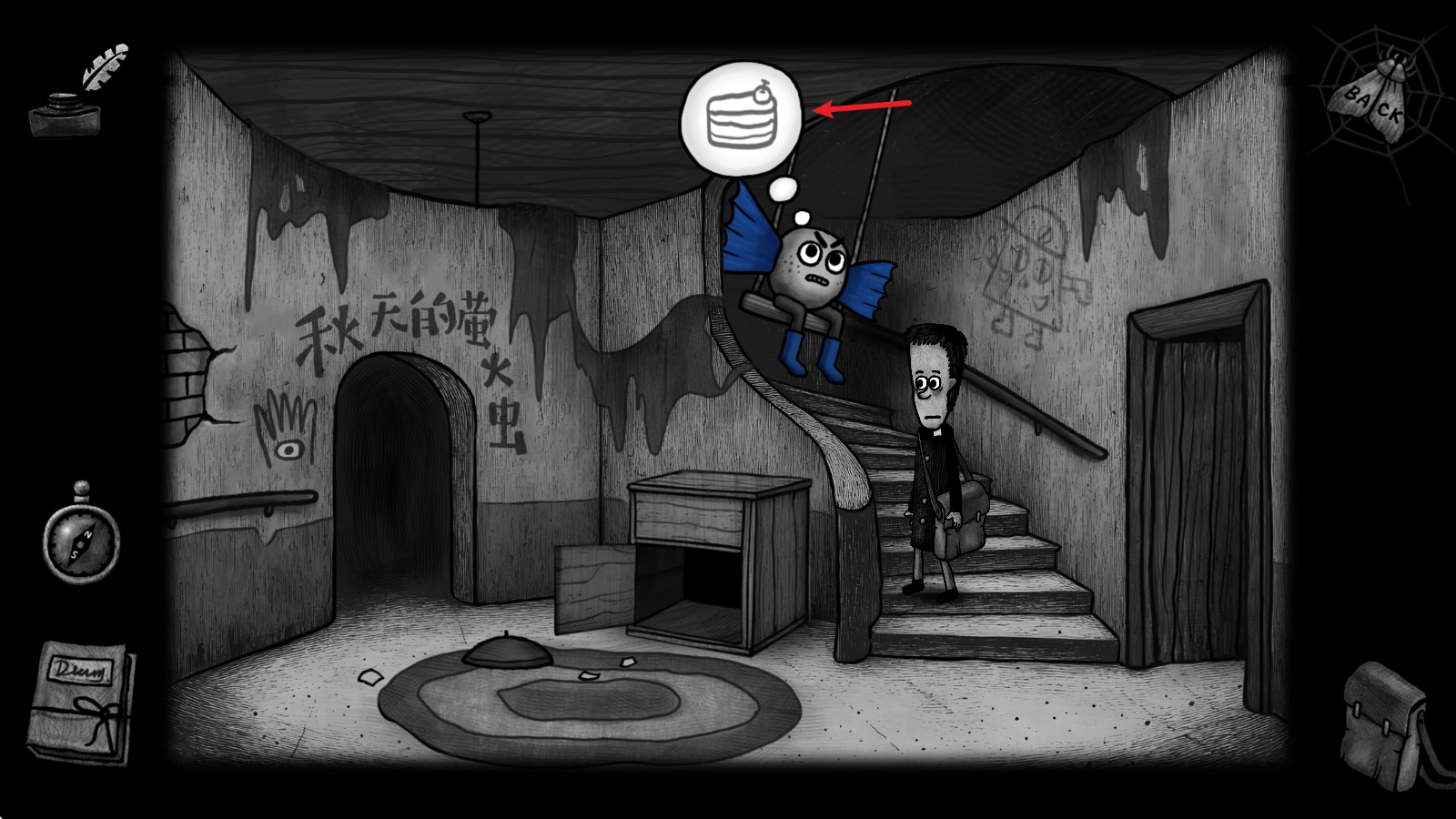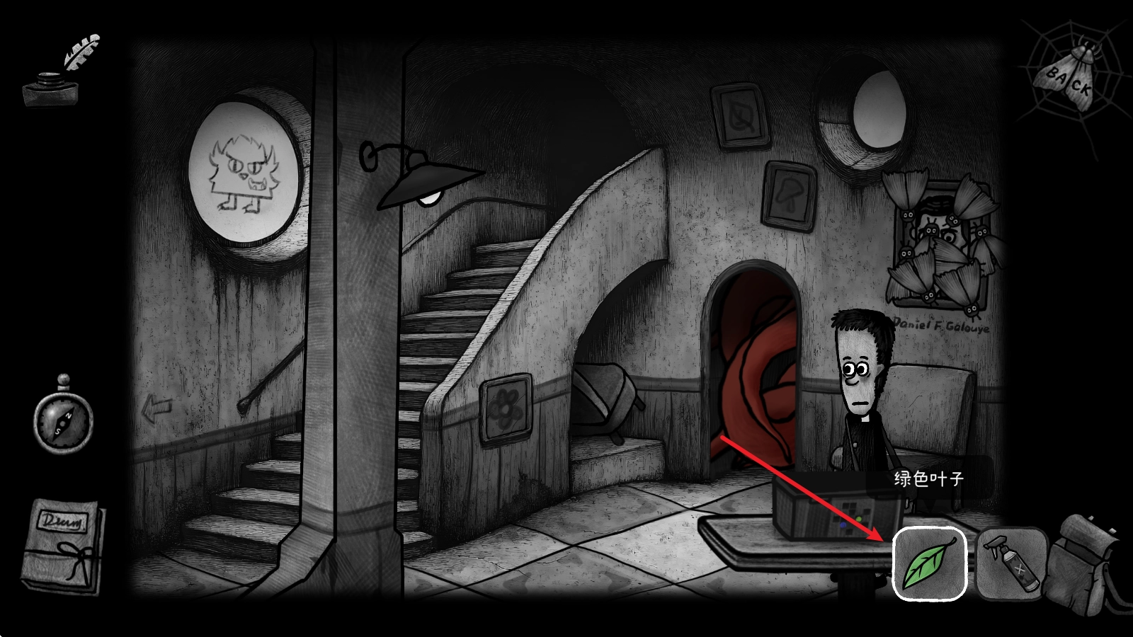 4、接着点击右边墙上的画,驱散蝙蝠之后就会得到一段说明。