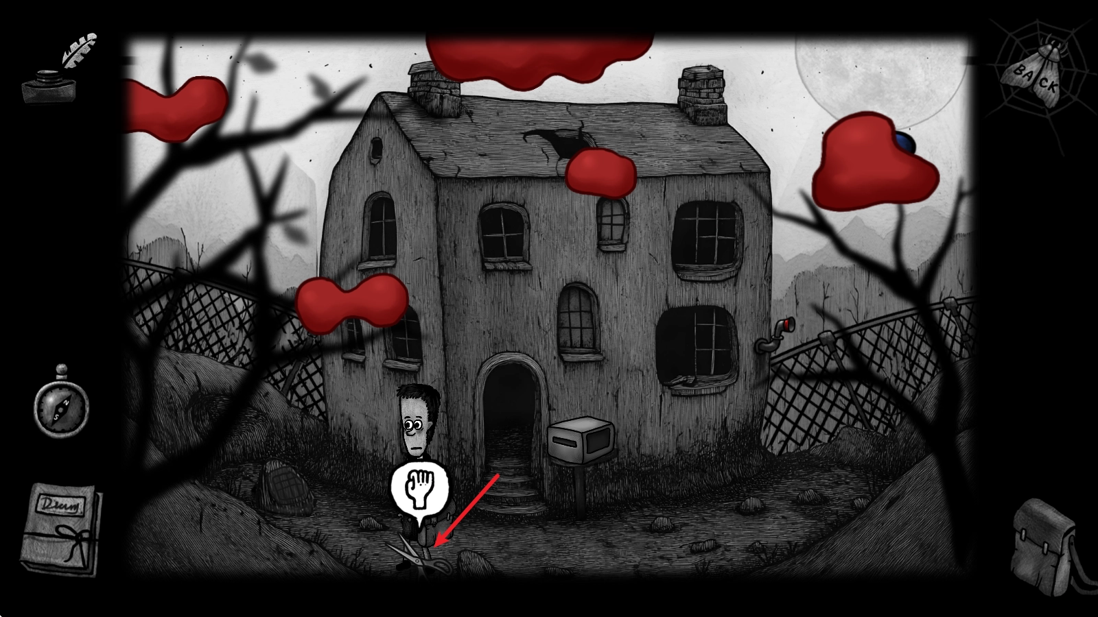 9、接着,我们返回一楼,走出屋子后,便能捡到一把剪刀。