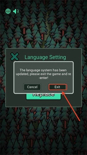 4、语言系统已经已更新,请退出游戏并重试,点击“Exit”后退出游戏并重启。