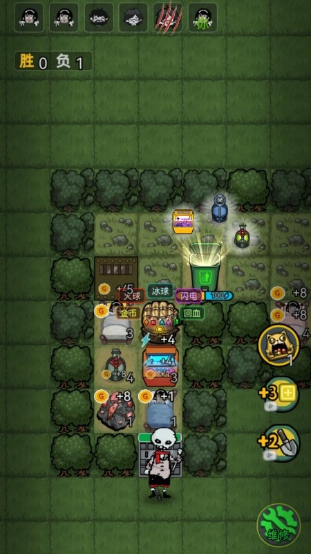 3、透过将同等级道具合成高级道具抵御进攻的猎梦者。