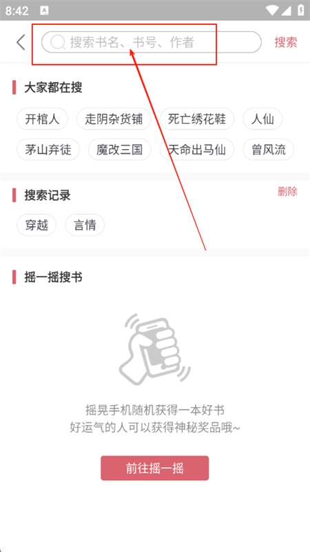 4、在搜索框输入小说名称进行搜索