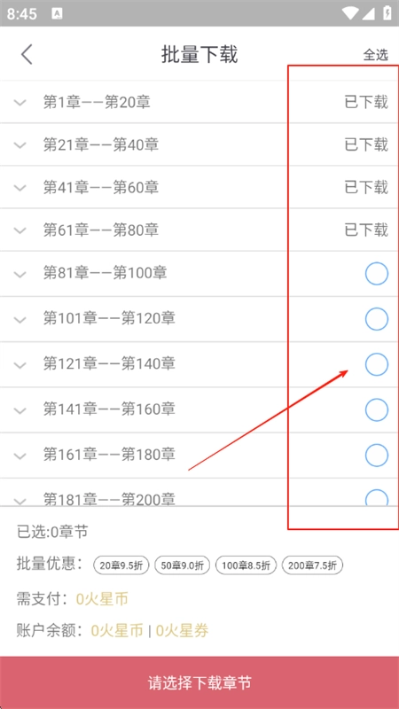 7、挑选你想要下载的章节,点击一下就能迅速完成下载。