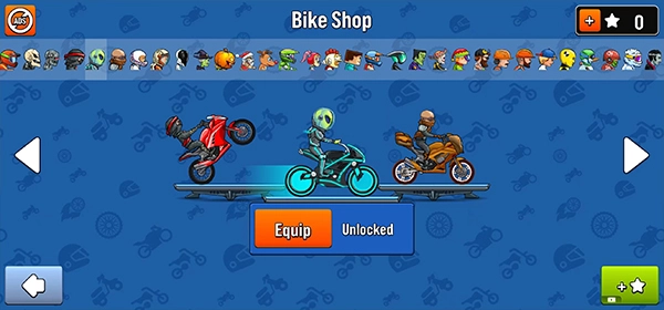 3、卡通的休闲卡通风格带来了极致休闲的感觉,有更多有趣的玩法和摩托车等待玩家解锁;