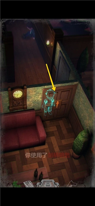 打怪技巧:射击时可以长按屏幕瞄准,然后一直轻点射击,或者点击一下屏幕下方的手枪标志瞄准(再次点击就会取消瞄准),然后多次点击屏幕其他地方进行射击,或是直接点击怪物进行手动瞄准。(瞄准后可以一直射击,不用瞄一次打一次,移动会中断瞄准状态,需要再次瞄准才能射击)箭头指的地方有一扇门,走进去。有怪出来,不要惊慌,拉开距离以后瞄准(我推荐点下方的手枪标志),射击,近距离被抓到会掉血,不贴脸就没事,非常简单,怪“啊!”的惨叫一声之后就不要再开枪了,已经死了,注意节省弹药。有的怪死了以后会掉亮闪闪的代币,记得踩踩尸体。
