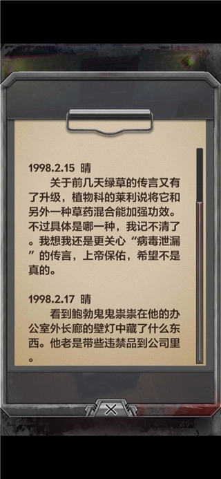 3、挑选读取管理员日记,从中获取部分剧情与提示,知晓钥匙被压在哪个箱子下方。