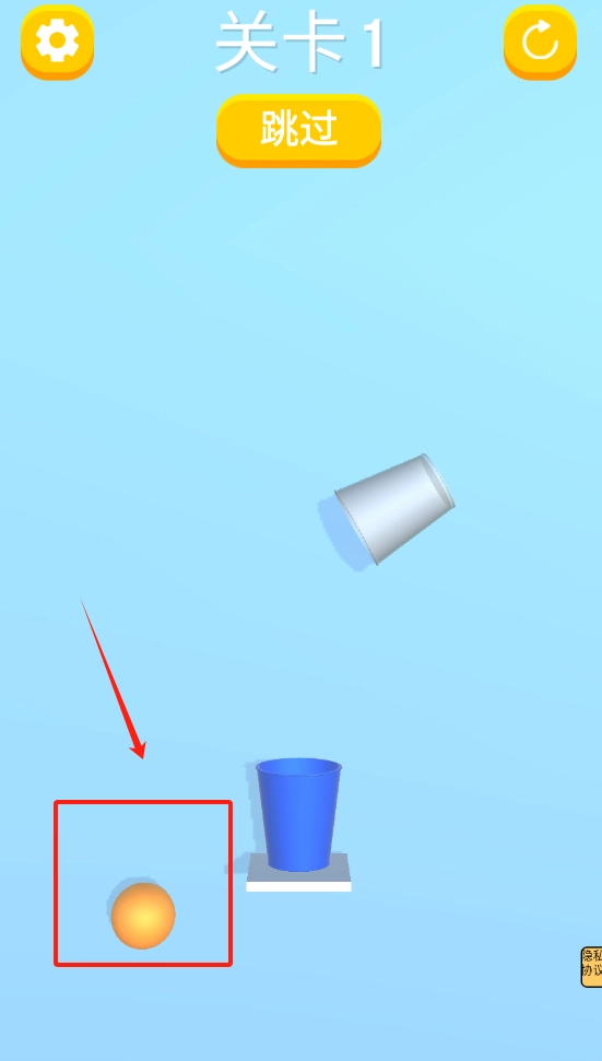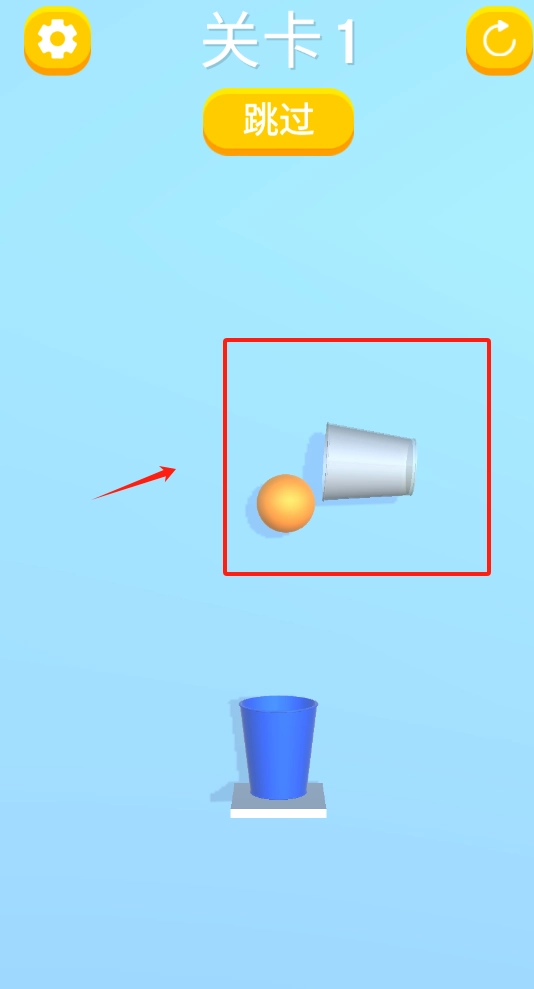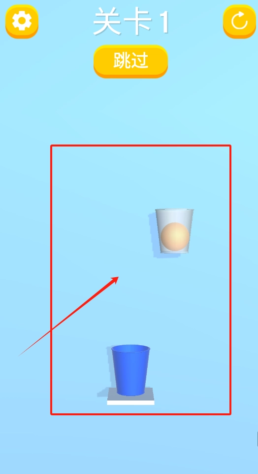 1. 通过点击上下杯子,使球从上方杯子落入下方杯子,以此达成关卡目标。