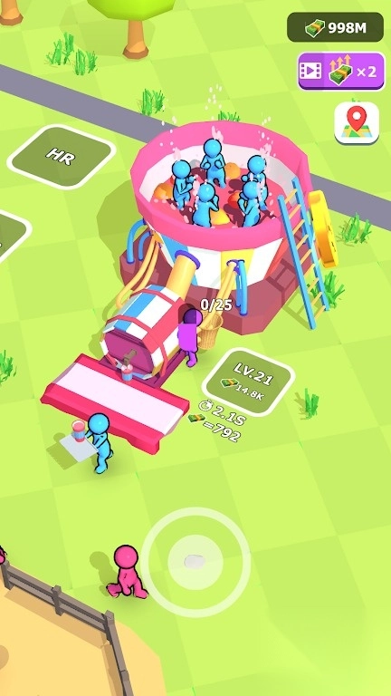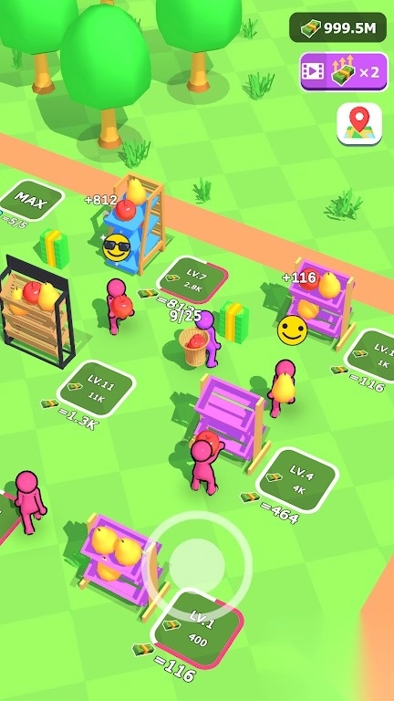 3.赚取金币后,可以雇佣更多员工来协助采摘和运输,同时升级榨汁机以提高生产速度。
