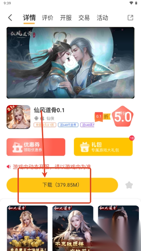2. 看完游戏福利内容后,点击下载按钮。