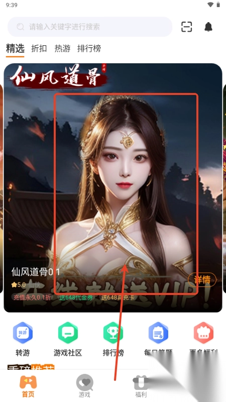 1. 打开软件进入首页,选择自己心仪的游戏。